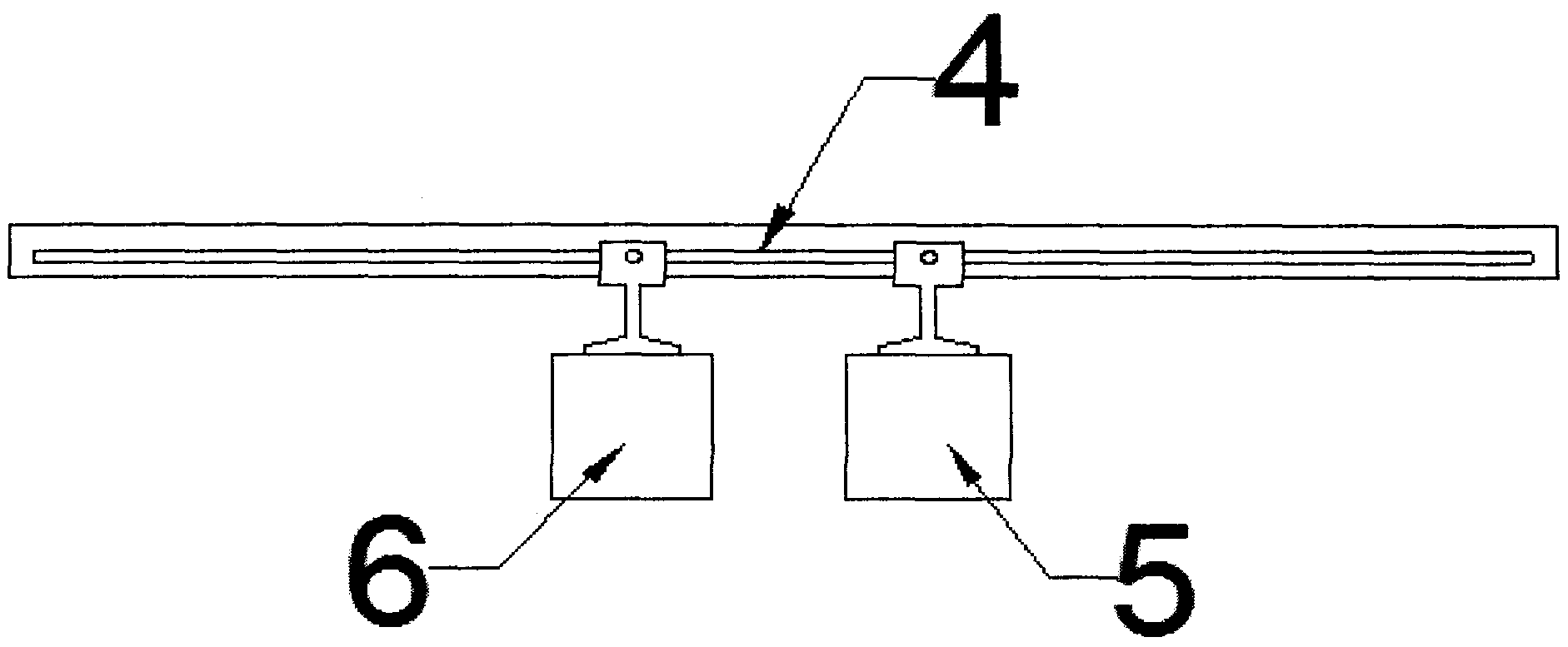 На фиг. 2 показана схема конструкции рупорного (бесконтактного) антенного блока устройства, состоящего из раздвижного кронштейна 4, закрепленных на нем приемника 5 и передатчика 6.In FIG. 2 shows a design diagram of a horn (non-contact) antenna unit of the device, consisting of a