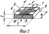 На одной из широких поверхностей диэлектрической подложки выполнено микрополосковое прямоугольное расширение 7, оси которого LL' и OO' совпадают с соответствующими осями диэлектрической подложки 6. Длина F прямоугольного микрополоскового расширения 7 определяется рабочим диапазоном частот и составляет