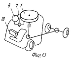 Система зажигания содержит прерыватель 17, связанный с системой управления 18 двигателя и обеспечивающий требуемую частоту возникновения искрового разряда на свечах 12. Прерыватель 17 может быть выполнен в виде нормально разомкнутых контактов реле с электромагнитным управлением или по какой-либо другой известной схеме. В состав системы зажигания входят также кольцевые коллекторы 19 и 20 на валу 2 (фиг.6), связанные с проводами свечей 12. Возможен вариант, когда каждой паре камер 5 соответствуют собственные коллекторы 19 и 20, прерыватель 17 и коммутационные провода к свечам 12. The ignition system contains a