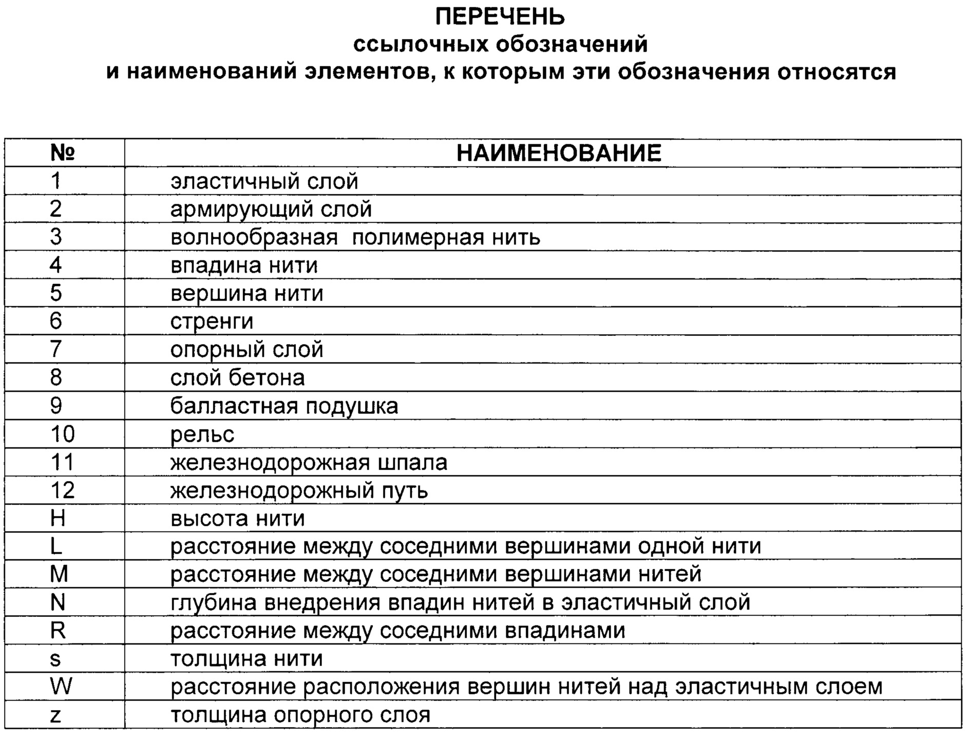 Поставленная задача достигается тем, что в подшпальной подкладке (фиг. 1-7), содержащей эластичный слой (1), в котором и над которым расположен армирующий слой (2), выполненный из рядов волнообразных полимерных нитей (3), внедренных своими впадинами (4) в эластичный слой (1) и свободно расположенными над ним своими вершинами (5), при этом через ряды волнообразных полимерных нитей (3) пропущены ряды стренг (6), имеются отличительные признаки: ряды стренг выполнены моноволоконными из полимера и ориентированы в армирующем слое таким образом, что пропущены через вершины (5) и впадины (4) волнообразных полимерных нитей (3), образуя с ними монолитный элемент армирующего слоя (2), причем стренги (6) выполнены моноволоконными из полимера, твердость которого равна твердости волнообразных полимерных нитей (3), которые, как и стренги (6), выполнены из полимера, твердость которого выше твердости полимера, из которого выполнен эластичный слой (1).The task is achieved by the fact that in the undersleeper lining (Fig. 1-7), containing an elastic layer (1), in which and above which there is a reinforcing layer (2), made of rows of wavy polymer threads (3), embedded by their depressions ( 4) into the elastic layer (1) and their tops (5) freely located above it, while rows of strands (6) are passed through the rows of wavy polymer threads (3), there are distinctive features: the rows of strands are made of monofilament polymer and are oriented in the reinforcing layer in such a way that they are passed through the tops (5) and troughs (4) of the wavy polymer threads (3), forming with them a monolithic element of the reinforcing layer (2), and the strands (6) are made of monofilament polymer, the hardness of which is equal to the hardness of the wavy polymer threads (3), which, like the strands (6), are made of a polymer whose hardness is higher than the hardness of the polymer from which the elastic layer (1) is made.