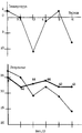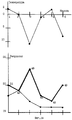 На фиг. 9 для реабилитации той же правой руки проводились приседания с гирей весом 16 кг до состояния ПКН /1.5 мин/ и охлаждением левой /парной/ руки. Необходимость такого варианта применения метода может возникнуть тогда, когда охлаждение реабилитируемой группы мышц по каким-либо причинам невозможно, например наложена повязка, недопускающая контакт с охладителем. Оценка силовой выносливости проводилась "на отказ". In FIG. 9, for rehabilitation of the same right arm, squats with a weight of 16 kg were carried out to the state of PKN /1.5 min / and cooling of the left / pair / arm. The need for such an application of the method may arise when cooling of the rehabilitated muscle group for some reason is impossible, for example, a dressing is applied that prevents contact with the cooler. Assessment of power endurance was carried out "on failure."