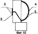 Десятое, дополнительное к девятому отличие состоит в том, что основной вал и, по меньшей мере, один дополнительный вал привода вращения связаны с общим двигателем синхронизирующей механической передачей. Общедоступными примерами таких передач могут, например, служить хорошо известные специалистам зубчатые или цепные передачи. При их использовании электронное управление включением-выключением точечных ИС, приводимых во вращение разными валами, окажется наиболее простым.