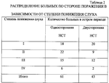 В заявляемом изобретении в результате проведенного лечения статистически достоверно (Р<0,05) произошло понижение порогов тонального слуха в среднем на 15-20-35 дБ в диапазоне речевых и высоких частот 500-1000-8000 Гц. При этом в 45,7% случаев слуховая функция была полностью восстановлена, у 44,1% - слух значительно улучшился, у 10,2% - остался на прежнем уровне. In the claimed invention, as a result of the treatment, a statistically significant (P <0.05) decrease in the thresholds of tonal hearing occurred on average by 15-20-35 dB in the range of speech and high frequencies of 500-1000-8000 Hz. At the same time, in 45.7% of cases, auditory function was fully restored, in 44.1% - hearing improved significantly, in 10.2% - it remained at the same level.