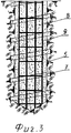 Затем под давлением подают бетонную смесь 8 (см. фиг.2) по внутреннему каналу полой шнековой колонны 1 к забою пилотной скважины 5. Под действием давления бетонной смеси в устройстве 4 срабатывает механизм выдвижения (не показан) винтообразующего выдвижного ножа 6, который внедряется в стенку пилотной скважины 5. После этого, не прекращая подачи бетонной смеси 8, начинают вращать полую шнековую колонну 1 с одновременной подачей ее вверх с определенной равномерной скоростью вращения и подачей бурового снаряда. Внедрившийся в грунт выдвижной нож 6 под действием крутящего момента и тангенциального усилия разрушает его, образовывая винтовую щель 7 в стенках пилотной скважины 5. Ширина образованной винтовой щели 7 равна ширине выдвижного ножа 6, а глубина равна величине выхода выдвижного ножа 6 за пределы диаметра пилотной скважины. Шаг спирали винтовой щели заранее задан и зависит от степени устойчивости грунта. Затем в образовавшуюся полость и винтовую щель продолжают нагнетать бетонную смесь до полного заполнения.