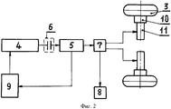 Перед началом движения электромобиля необходимо передвинуть ручку управления 21 и отключить разобщительную муфту, отсоединив ведущий вал 17 от ведомого вала 18 усилителя крутящего момента. После этого усилитель крутящего момента 4 подключается к аккумуляторным батареям 9. Постоянный ток через клеммы клеммовой коробки 29 подается на щетки 28 всех электродинамических линейных двигателей 25 усилительных элементов 16, при этом щетки 28 должны контактировать не менее чем с пятью шариками 36. Ток J проходит через шарика 36, находящиеся в магнитном поле С-образного магнита 26, и на них действует сила F (фит.10), которая заставляет их перемещаться со скоростью V. В результате все шарики перемещаются и через зубья шестерни 32 вращают ведущий вал 17. Если посмотреть на фиг.8, где представлена картина магнитного поля магнита 22, то видно, что максимальная магнитная напряженность сосредоточена на полюсах, а в средней части, показано пунктирными линиями, оно отсутствует. Поэтому при движении шариков 36 через трубопроводы 31, 35 они попадают в верхний 23 и нижний 24 вертикальные каналы и под действием магнитного поля втягиваютcя с ускорением внутрь магнита 22 силами F1 и F2. Те шарики 36, которые находятся в средней части, будут без всякого сопротивления выходить из магнита 22, так как магнитное поле в том месте отсутствует, и двигатьcя дальше. В результате непрерывного втягивания магнитным полем магнита 22 движение шариков 36 будет происходить под действием равнодействующей силы Fp, которая складывается из сил F+F1+F2, и возрастать до определенного момента. Как только зубчатая шестерня 32 и ведущий вал 17 достигнут максимальной частоты вращения и необходимой мощности, поворачивается ручка управления 21. Ведущий элемент 20 разобщительной муфты соединится с ведомым элементом 19, ведомый вал 18 начнет вращаться и вращать вал генератора постоянного тока 5, который через механизмы управления 7 подаст ток на тяговые электродвигатели 11, и электромобиль придет в движение. Скорость движения электромобиля может изменяться путем изменения величины тока, подаваемого на тяговые электродвигатели 11. Торможение осуществляется обычными тормозами и дополнительно путем включения в цепь тяговых электродвигателей 11 тормозных реостатов 8 в моменты, когда тяговые электродвигатели работают в режиме генераторов постоянного тока. Для того чтобы мощность на валу усилителя крутящего момента была максимальной, магниты 22 должны иметь большую магнитную напряженность и быть изготовленными из материалов, имеющих добавки редкоземельных элементов. При небольшой скорости движения на спусках, на остановках неиспользованная энергия генератора постоянного тока 5 направляется на подзарядку аккумуляторных батарей 9. По прибытии к месту назначения усилитель крутящего момента 4 отключается от аккумуляторных батарей 9, а ручкой управления 21 ведущий вал 17 отключается от ведомого вала 18.