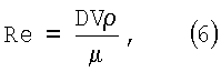 где Re - это число Рейнольдса, которое является функцией от скорости потока V и вязкости текучей среды µ: