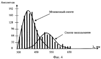 Реализации зарегистрированных спектров сигналов откликов в виде амплитудно-частотных характеристик видимого диапазона иллюстрируется графиками фиг.4.The implementation of the recorded spectra of response signals in the form of amplitude-frequency characteristics of the visible range is illustrated by the graphs of Fig. 4.