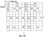 [46] В первом OFDM-символе первые опорные сигналы R1 могут быть распределены в интервале, равном шести поднесущим. Подобным же образом в пятом OFDM-символе вторые опорные сигналы R2 могут быть распределены в интервале, равном шести поднесущим. В пятом OFDM-символе все вторые опорные сигналы R2 сдвинуты на величину в три поднесущие от позиций, в которых размещены первые опорные сигналы R1 в первом OFDM-символе. В подкадре матрица (R1, D, D, D, D, D) повторяется в первом OFDM-символе, а матрица (D, D, D, R2, D, D) повторяется в пятом OFDM-символе.