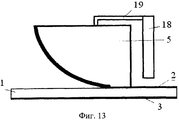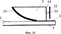 Установка апертурной импедансной нагрузки 18 (фиг.10 - 13) и подбор типа контактного элемента 19, а также выполнение импедансных поперечных разрезов 20 (фиг.14 - 16) позволяют расширить рабочий диапазон широкополосной антенны в сторону низких частот без увеличения размеров апертуры и одновременно обеспечить высокий уровень согласования.The installation of the aperture impedance load 18 (Fig.10 - 13) and the selection of the type of the