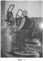 1. Исходное положение пациента (Фиг.6). Правая нога расположена в передней части платформы, левая максимально удалена; правая рука удерживает левый нижний поручень штанги, левая - правый верхний.1. The initial position of the patient (Fig.6). The right leg is located in front of the platform, the left is maximally removed; the right hand holds the lower left handrail of the bar, the left - the upper right.