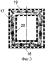 Каждый из штучных звукопоглотителей состоит из корпуса, выполненного в виде боковых замкнутых поверхностей 17 с днищем 18 и откидной крышкой 19, выполненных из перфорированного листа из нержавеющей стали или оцинкованного листа толщиной 0,7 мм с полимерным защитно-декоративным покрытием типа «Пурал» толщиной 50 мкм или «Полиэстер» толщиной 25 мкм или алюминиевого листа толщиной 1,0 мм и толщиной покрытия 25 мкм. Соосно корпусу и на равном расстоянии от его внутренних поверхностей размещена пустотелая камера 20 из перфорированного листа с поверхностями, конгруэнтными поверхностям корпуса. Между стенками корпуса и камерой размещена звукопоглощающая конструкция, выполненная в виде перфорированных коаксиальных оболочек, внешней 21 и внутренней 22, между которыми расположен звукопоглотитель 23, выполненный, по крайней мере, из одного профилированного пористого листа, причем профиль листа в сечении может быть треугольным, прямоугольным, трапецеидальным, в виде дуг окружностей, синусоидальным. В случае двух и более профилированных пористых листов, они могут располагаться как с зазорами между ними, так и без зазоров. Боковые замкнутые поверхности корпуса и коаксиальные оболочки 21 и 22 звукопоглощающей конструкции могут иметь в сечении также форму треугольника, многогранника, эллипса, круга или любую комбинацию из этих фигур.