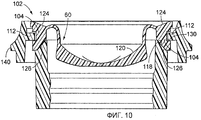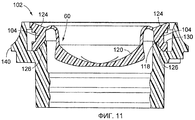 Контейнеры и укупорочные средства могут быть использованы для дозирования широкого разнообразия веществ, таких как жидкости, гели, суспензии и т.п., из контейнера, которые известны специалистам в данной области техники. Было известно использование укупорочных средств с приводимыми в действие давлением упругими клапанами щелевого типа для дозирования содержавшегося вещества, в то время, когда к контейнеру приложено давление. Также известно использование удерживающих колец, таким образом, что клапан может быть вставлен в удерживающее кольцо, чтобы образовать предварительно собранное кольцевое удерживающее устройство, которое может быть затем вставлено в укупорочное средство (например, см. патент US №5531363). Такая предварительно собранная конструкция может быть предпочтительной для производственных процессов, поскольку кольцевое удерживающее устройство может быть собрано в месте, отличном от места завершающей сборки укупорочного средства на контейнере.