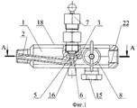 Корпус 1 клапана со стороны входа имеет наружную коническую резьбу 21, при помощи которой подсоединяется к ответной резьбе оборудования, а со стороны выхода - внутреннюю коническую резьбу 22 на ответвлениях 10, 11 и 12.