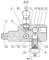 При использовании основного 7 запорного органа дополнительный запорный орган 20 всегда находится в открытом положении. Перед подачей давления рабочей среды из системы на манометр дренажный 8 запорный орган закрывается. Затем открывается основной 7 запорный орган, образуя зазор между седлом 6 и исполнительным механизмом вентиля, через который давление подается на манометр.