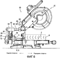 5. Режущее устройство по п.1, в котором второй управляющий элемент содержит поворачиваемую круговую шкалу, и второе установочное средство дополнительно включает устройство преобразования движения, предназначенное для преобразования поворота круговой шкалы в перемещение второго установочного элемента между положением блокировки и положением разблокировки.