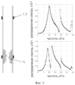 Изобретение поясняется чертежами, где на фиг.1 приведена принципиальная схема возможного расположения неоднородностей на стенках трубопровода; на фиг.2 - схема системы контроля за образованием нежелательной неоднородности в трубопроводе; на фиг.3а и 3б - примеры систем измерений для определения местоположения неоднородности; на фиг.3в - пример измеренного сигнала; на фиг.4 - пример системы измерений для определения длины неоднородности; на фиг.5 - амплитудно-частотный спектр сигнала для однородной структуры и структуры с неоднородностью, на фиг.6 - спектр отраженного сигнала и сигнала, прошедшего сквозь неоднородность, для изгибных мод.The invention is illustrated by drawings, where figure 1 shows a schematic diagram of a possible arrangement of inhomogeneities on the walls of the pipeline; figure 2 - diagram of a control system for the formation of unwanted heterogeneity in the pipeline; on figa and 3b are examples of measurement systems for determining the location of heterogeneity; on figv - an example of a measured signal; figure 4 is an example of a measurement system for determining the length of the heterogeneity; figure 5 - amplitude-frequency spectrum of the signal for a homogeneous structure and structure with heterogeneity, figure 6 - spectrum of the reflected signal and the signal transmitted through the inhomogeneity, for bending modes.