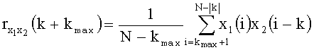 where k is the argument of the mutual correlation function corresponding to the shift in the samples of two signals x 1 and x 2 , varying in the range - k max ≤k≤k max ;