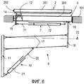 Механизм 9 плоскопараллельного подъема и опускания, а также привод 10 размещены на держателе 11 (промежуточной опоре), выполненной, например, в виде кронштейна, который крепится к соответствующему элементу стола, например, к его основанию или к тыльной поверхности столешницы (на чертежах не показано) или прямоугольной рамы. Здесь необходимо отметить, что, в отличие от описанного выше примера, в патентуемом устройстве может быть использован также и один общий привод (актуатор) для обоих упомянутых выше механизмов 6 и 9. Однако использование одного общего привода неизбежно приведет к усложнению кинематической схемы упомянутых выше механизмов, а следовательно, к увеличению стоимости устройства и снижению его эксплуатационной надежности.The