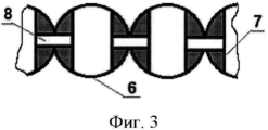 На фиг.1, фиг.2, фиг.3 показано устройство движителя транспортного средства. Оно содержит корпус 1, валы 2, приводы 3, шкивы 4, гребные лопасти 5, 9, которые имеют возможность вращения в пределах от нуля до заданного острого угла относительно ленты 6, жесткости 7, отверстия в жесткостях 8 и лопастной ограничитель 10. В процессе подготовки к работе производится накачивание ленты воздухом, при этом при увеличении давления увеличивается натяжение ленты за счет увеличения амплитуды противоположных сторон камеры.
