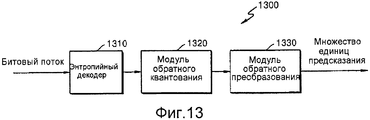 Модуль 1320 обратного квантования обратно квантует коэффициенты частотных составляющих, которые энтропийно декодированы энтропийным декодером 1310.
