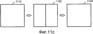 Таким образом, применительно к суб-единице кодирования на глубине, соответствующей заранее определенному значению, предпочтительно, но необязательно, чтобы единицы предсказания, включенные в суб-единицу кодирования, группировались и задавались в качестве единицы преобразования, и затем над ней выполнялось преобразование. Для этого модуль 1010 выбора задает единицу преобразования на основе глубины суб-единицы кодирования. Например, в случае, где глубина единицы 1110 кодирования на Фиг. 11c больше чем к, модуль 1010 выбора группирует единицы 1120 предсказания и задает их в качестве единицы 1150 преобразования.