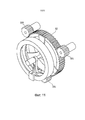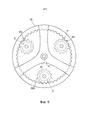 на фиг. 11 - электрогенерирующая система согласно четвертому варианту осуществления изобретения, причем главная шестерня является шестерней наружного зацепления, а ведомые шестерни являются шестернями внутреннего зацепления, вид в перспективе.