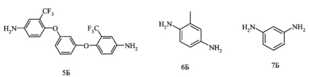 6. Способ по п.4, отличающийся тем, что в качестве исходных соединений используются ароматические диамины, выбранные из группы следующих соединений: 1,4-диаминобензол, 4,4'-оксидианилин, 1,4-диамино-2,5-диметилбензол, 4,4'-сульфодианилин, [4-{3-[4-амино-2-(трифторметил)фенокси]фенокси}-3-(трифторметил)фенил]амин, 1,4-диамино-2-метилбензол, 1,3-диаминобензол, 4,4'-диамино-2,2',3,3',5,5',6,6'-октафторбифенил, 1,4-диамино-2-фторбензол, тетрафтор-мета-фенилендиамин, 1,4-диамино-2-(трифторметил)бензол, тетрафтор-пара-фенилендиамин, 1,5-диаминонафталин, [4-{4-[4-амино-3-(трифторметил)фенокси]фенокси}-2-(трифторметил)фенил]амин, [4-{4-[4-амино-2-(трифторметил)фенокси]фенокси}-3-(трифторметил)фенил]-амин, [4-{4-[4-амино-2-(трифторметил)фенокси]-2,3,5,6-тетрафторфенокси}-3-(трифторметил)фенил]амин.