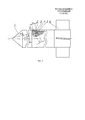 Сущность изобретения поясняется Фиг. 1, где изображен продольный разрез вращающегося реактивного снаряда.The invention is illustrated in FIG. 1, which shows a longitudinal section of a rotating missile.