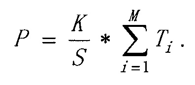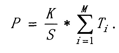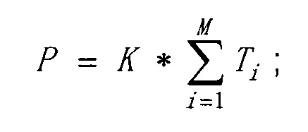 В данном случае, предположим, что действительная продолжительность каждой телевизионной программы TVOD равна S, и М пользователей просмотрели телевизионную программу TVOD, и действительное время просмотра для каждого пользователя равно Ti, и значимость программы равна К, а степень предпочтительности программы равна Р, и тогда:In this case, suppose that the actual duration of each television program TVOD is S, and M users have watched the television program TVOD, and the actual viewing time for each user is T i , and the significance of the program is K, and the degree of program preference is P, and then :
