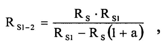 - расчетную величину удельного поверхностного сопротивления RS1-2 отдельного резистивного слоя с положительным ТКС определяют из величин удельного поверхностного сопротивления взаимочередующихся нанослоев по формуле: