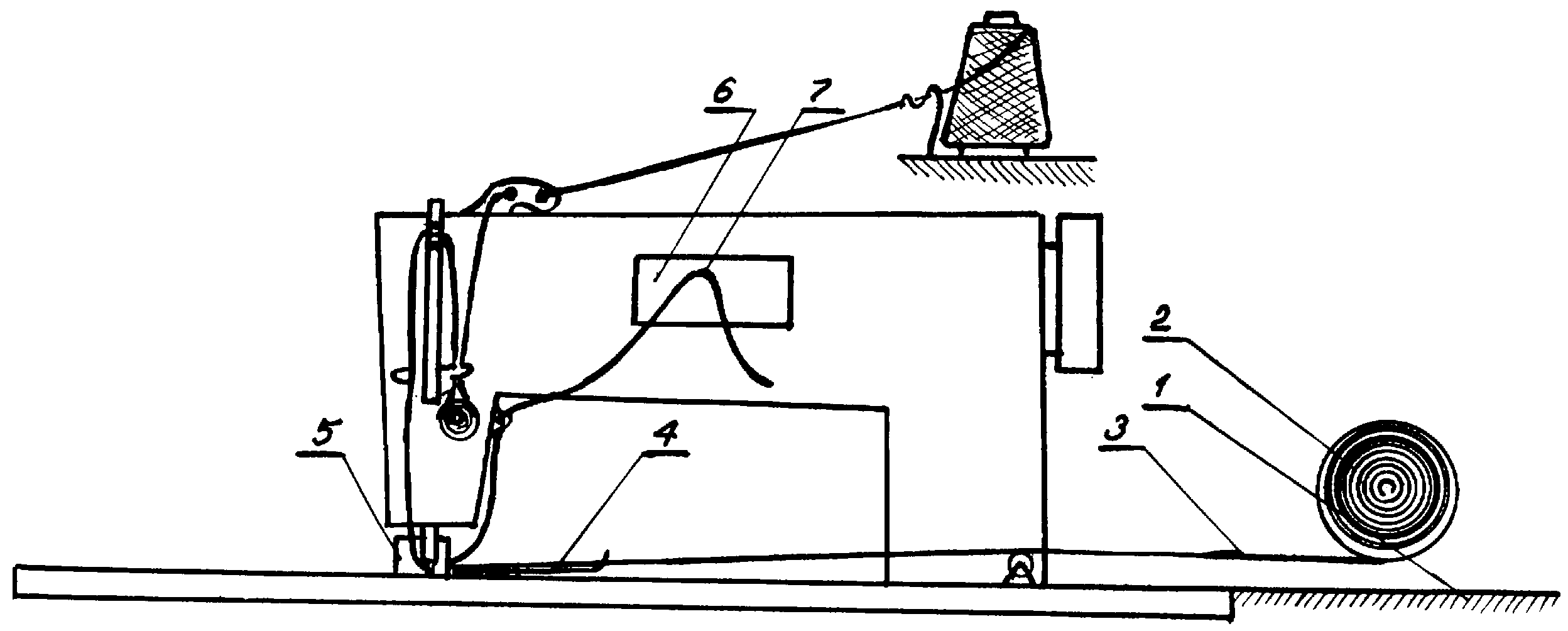 - Узел к швейной машине для герметизации мест ниточных соединений, содержащий жестко закрепленный на платформе швейной машины рулон с герметизирующим материалом, направитель герметизирующего материала, прессующий орган, отличающийся тем, что рулон с герметизирующим материалом размещен на платформе, под рукавом швейной машины перед игольной пластиной на платформе расположен направитель, выполненный в виде длинномерной металлической Г-образной пластины, установленной по ходу движения герметизирующего материала с возможностью изменения его траектории перемещения на перпендикулярное, при этом на входе и выходе направителя имеются направляющие пазы, покрытые антиадгезионным материалом, на рукаве швейной машины установлено приспособление для удаления антиадгезионного носителя герметизирующей пленки в процессе шитья, выполненное в виде двух прижимных роликов, а прессующий орган, установленный за прижимной лапкой, представляет собой прижимной ролик с возможностью регулирования усилия сжатия.