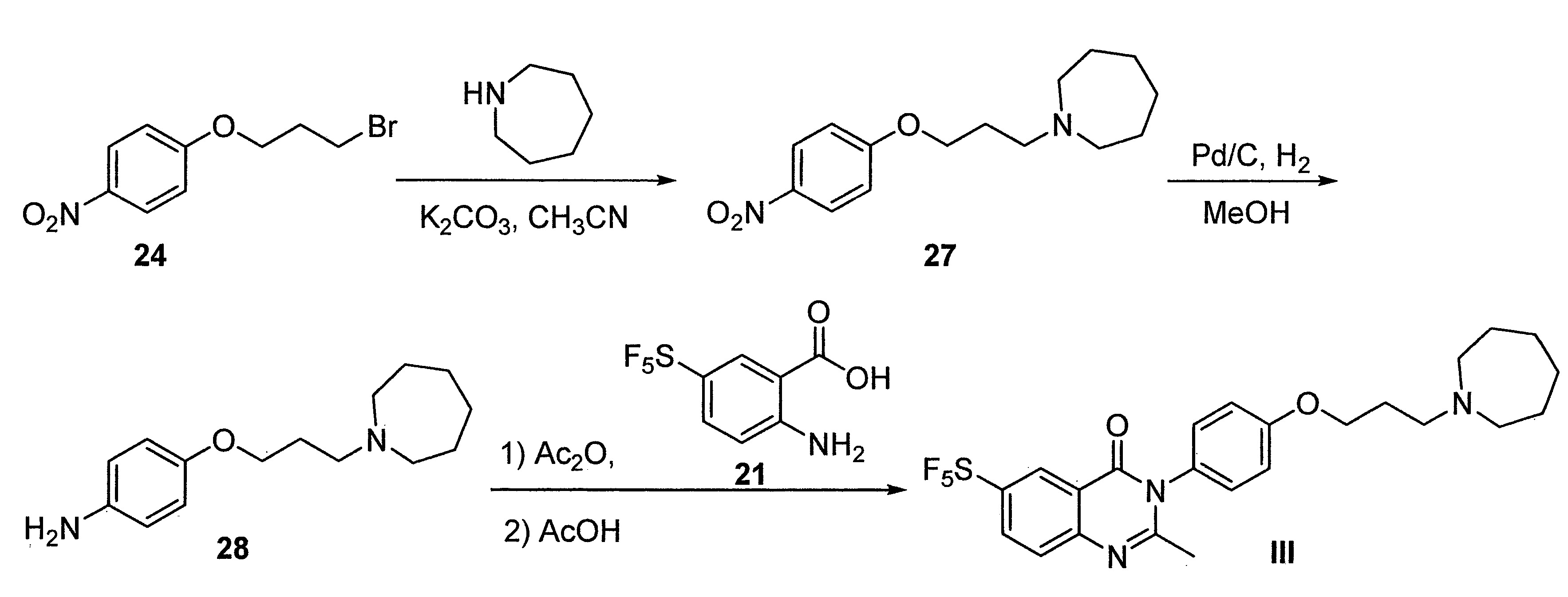 - DFHCZVVWCSOMKA-UHFFFAOYSA-N 2-amino-5-(pentafluoro-lambda6-sulfanyl)benzoic acid Chemical compound Nc1ccc(cc1C(O)=O)S(F)(F)(F)(F)F DFHCZVVWCSOMKA-UHFFFAOYSA-N 0.000 description 47