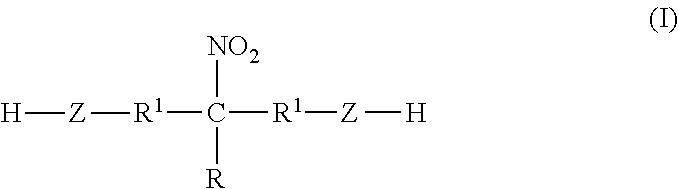 - the nitroalcohol compound of formula I is 2-nitro-2-methyl-1,3-propanediol (NMPD), 2-nitro-2-ethyl-1,3-propanediol (NEPD) or tris(hydroxymethyl)nitromethane (TN).