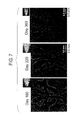 FIG. 8 is a schematic diagram that depicts the movement of differentiated cells in the epithelial tissue when stem cells are present in their niches (right) and when stem cells are scattered around the epithelial cell basement membrane (left). SMG refers to sub-mucosal gland. The four plane views at the bottom show the apical surface of the airway epithelium. The lower two plane views depict the result after two cycles of stem cell division (approximately 180 days later). When the stem cells reach a certain proportion, the differentiated cells rapidly move laterally. Cell regeneration takes place in three-month intervals. In the figure, striped (shaded) circles indicate stem cells, open circles represent airway epithelial progenitor cells, grey circles represent airway epithelial cells in the process of differentiation, and filled circles represent differentiated airway epithelial cells.