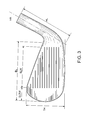 As shown in FIG. 3 and set forth in Table III above, another embodiment of the present invention includes a set of irons that have a substantially constant Blade Length (BL) throughout the set. The BL is defined at the length from the hosel axis (HA) intersection with the ground plane to the end of the toe. However in this set, the Toe Height (TH) progressively increases through the set. Thus, the TH of the mid iron is greater than the TH of the long iron and the TH of the short iron is greater than the TH of the mid iron and the long iron. The TH is defined as the maximum length from the leading edge to the top of the toe in the plane parallel to the face plane and perpendicular to the scorelines. Preferably, the TH increases by about at least 0.3 mm per club, and most preferably at least 0.4 mm per club. Also, the TH preferably increases at least 1 mm per club (or about 4 degrees of loft) for the short irons and only 0.3-0.6 mm per club for the long and mid irons.