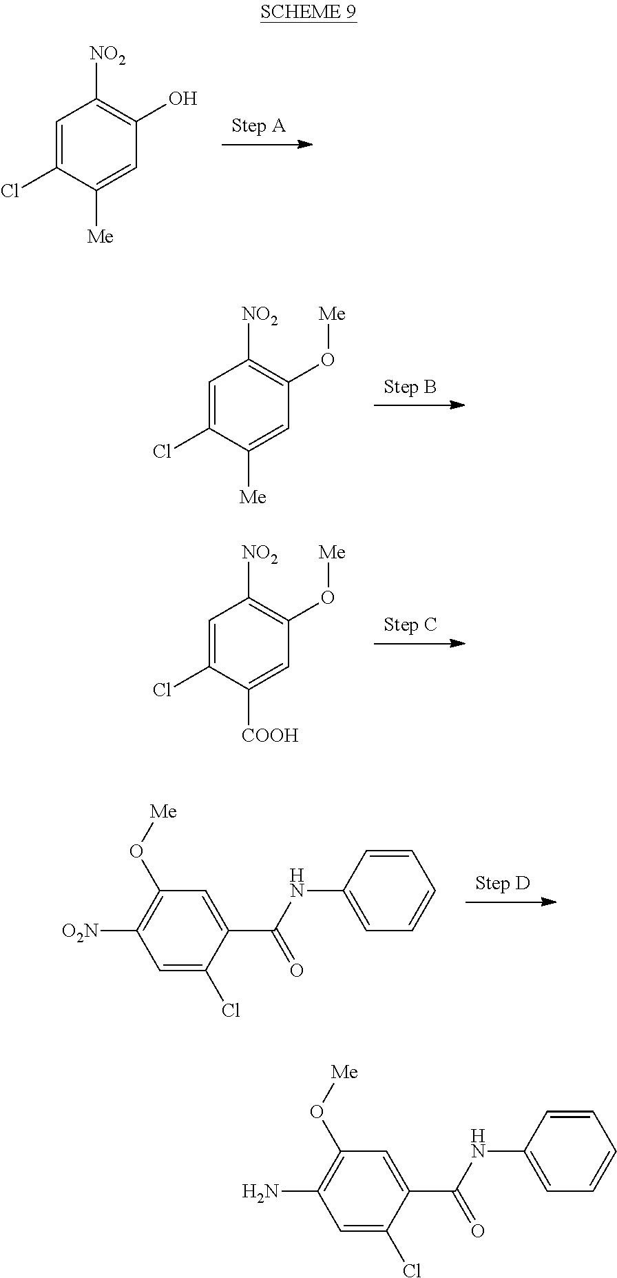 - OGXWVXQYKHATSP-UHFFFAOYSA-N CC1=CC(O)=C([N+](=O)[O-])C=C1Cl.COC1=C(N)C=C(Cl)C(C(=O)CC2=CC=CC=C2)=C1.COC1=C([N+](=O)[O-])C=C(Cl)C(C(=O)CC2=CC=CC=C2)=C1.COC1=C([N+](=O)[O-])C=C(Cl)C(C(=O)O)=C1.COC1=C([N+](=O)[O-])C=C(Cl)C(C)=C1 Chemical compound CC1=CC(O)=C([N+](=O)[O-])C=C1Cl.COC1=C(N)C=C(Cl)C(C(=O)CC2=CC=CC=C2)=C1.COC1=C([N+](=O)[O-])C=C(Cl)C(C(=O)CC2=CC=CC=C2)=C1.COC1=C([N+](=O)[O-])C=C(Cl)C(C(=O)O)=C1.COC1=C([N+](=O)[O-])C=C(Cl)C(C)=C1 OGXWVXQYKHATSP-UHFFFAOYSA-N 0.000 description 1