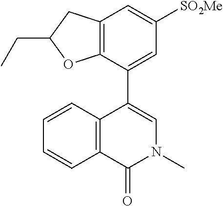 - RWSRZYPJSXRULB-UHFFFAOYSA-N CCS(=O)(=O)CC1=CC2=C(OC(C3CC3)C2)C(C2=CN(C)C(=O)C(C)=C2)=C1 Chemical compound CCS(=O)(=O)CC1=CC2=C(OC(C3CC3)C2)C(C2=CN(C)C(=O)C(C)=C2)=C1 RWSRZYPJSXRULB-UHFFFAOYSA-N 0.000 description 3