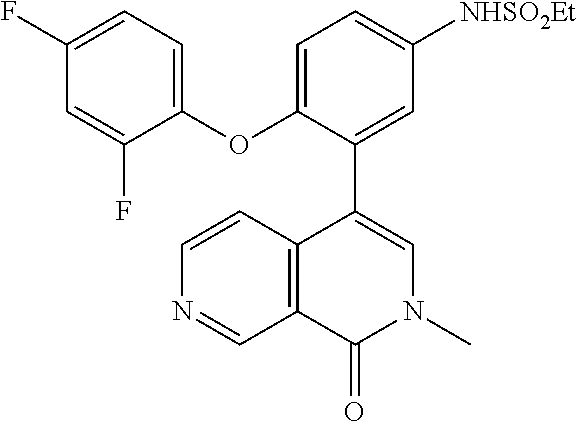 - FQQVEHQFZSGKHI-UHFFFAOYSA-N CC1=CC(=O)N(C)C=C1C1=CC(NS(C)(=O)=O)=CC=C1OC1=CC=C(F)C=C1F Chemical compound CC1=CC(=O)N(C)C=C1C1=CC(NS(C)(=O)=O)=CC=C1OC1=CC=C(F)C=C1F FQQVEHQFZSGKHI-UHFFFAOYSA-N 0.000 description 2
