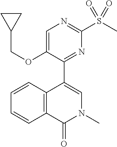 - CIXNHMLVJFDJTC-UHFFFAOYSA-N CC1=CC(C2=NC(CS(C)(=O)=O)=NC=C2OCC2CC2)=CN(C)C1=O Chemical compound CC1=CC(C2=NC(CS(C)(=O)=O)=NC=C2OCC2CC2)=CN(C)C1=O CIXNHMLVJFDJTC-UHFFFAOYSA-N 0.000 description 2