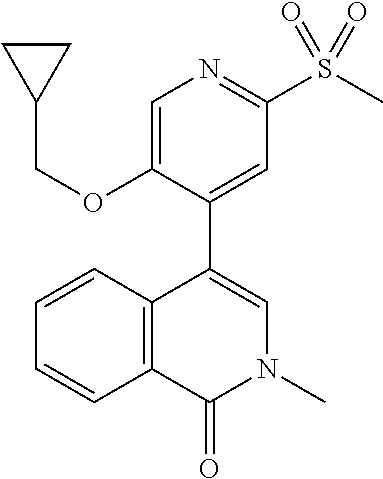 - OCIJSTSRCQSDTB-UHFFFAOYSA-N CC1=CC(=O)N(C)C=C1C1=CC(S(C)(=O)=O)=CC=C1OCC1CC1 Chemical compound CC1=CC(=O)N(C)C=C1C1=CC(S(C)(=O)=O)=CC=C1OCC1CC1 OCIJSTSRCQSDTB-UHFFFAOYSA-N 0.000 description 2