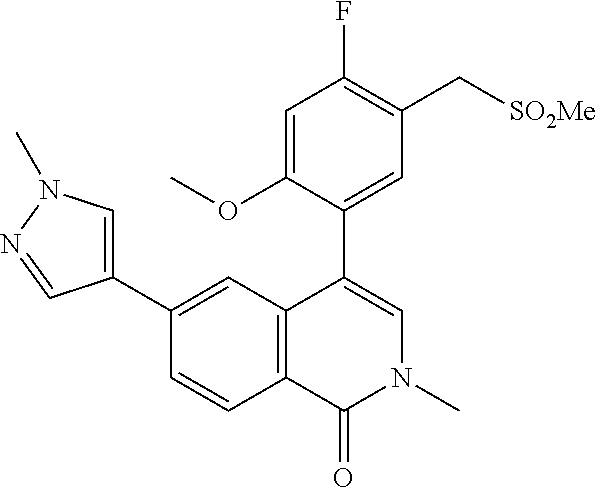 - MLLCVCTVTIRYSV-UHFFFAOYSA-N COC1=CC=C(S(C)(=O)=O)C=C1C1=CN(C)C(=O)C2=C1C=C(C1=CN(C3CCNC3)N=C1)C=C2 Chemical compound COC1=CC=C(S(C)(=O)=O)C=C1C1=CN(C)C(=O)C2=C1C=C(C1=CN(C3CCNC3)N=C1)C=C2 MLLCVCTVTIRYSV-UHFFFAOYSA-N 0.000 description 3
