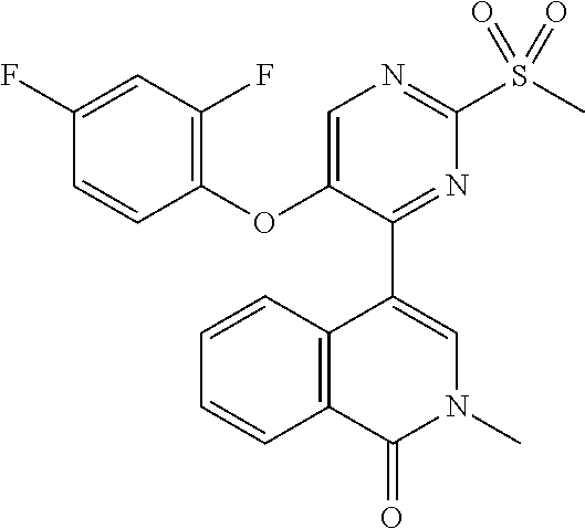 - QGDCXYDXXIGISC-UHFFFAOYSA-N COC1=CC(C2=NC(CS(C)(=O)=O)=NC=C2OC2=CC=C(F)C=C2F)=CN(C)C1=O Chemical compound COC1=CC(C2=NC(CS(C)(=O)=O)=NC=C2OC2=CC=C(F)C=C2F)=CN(C)C1=O QGDCXYDXXIGISC-UHFFFAOYSA-N 0.000 description 3