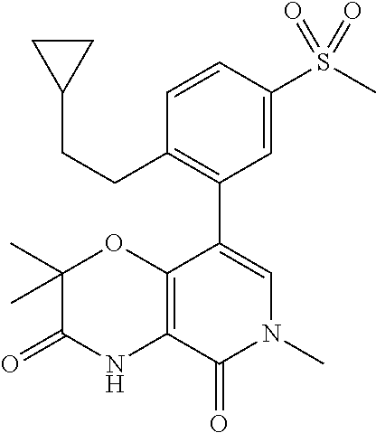 - MXKBHWNDCIVIBH-UHFFFAOYSA-N CC1=CC(C2=CC(CS(C)(=O)=O)=CC3=C2OC(C2CC2)C3)=CN(C)C1=O Chemical compound CC1=CC(C2=CC(CS(C)(=O)=O)=CC3=C2OC(C2CC2)C3)=CN(C)C1=O MXKBHWNDCIVIBH-UHFFFAOYSA-N 0.000 description 2