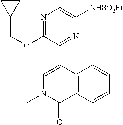 - AEPJMQLWEKYZHW-UHFFFAOYSA-N CCS(=O)(=O)NC1=CC(C2=CN(C)C(=O)C3=C2C=CO3)=C(OCC2CC2)N=C1 Chemical compound CCS(=O)(=O)NC1=CC(C2=CN(C)C(=O)C3=C2C=CO3)=C(OCC2CC2)N=C1 AEPJMQLWEKYZHW-UHFFFAOYSA-N 0.000 description 3