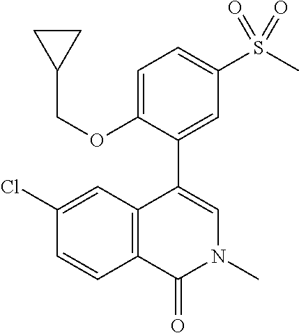 - OEEUWLJFCDKLRI-UHFFFAOYSA-N CCS(=O)(=O)C1=CC=C(OCC2CC2)C(C2=CN(C)C(=O)C3=C2CCC3)=C1 Chemical compound CCS(=O)(=O)C1=CC=C(OCC2CC2)C(C2=CN(C)C(=O)C3=C2CCC3)=C1 OEEUWLJFCDKLRI-UHFFFAOYSA-N 0.000 description 3