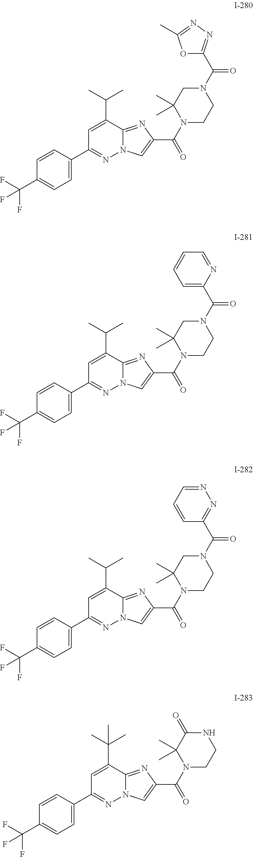 - OVHQMNZPHCSSLL-UHFFFAOYSA-N CC1(C)CN(C(=O)C2=CC=NN2)CCN1C(=O)C1=CN2N=C(C3=CC=C(F)C=C3)C=C(C(F)(F)F)C2=N1.CC1(C)CN(C(=O)C2=NC=CN2)CCN1C(=O)C1=CN2N=C(C3=CC=C(F)C=C3)C=C(C(F)(F)F)C2=N1.CC1(C)CN(C(=O)C2=NCC=N2)CCN1C(=O)C1=CN2N=C(C3=CC=C(F)C=C3)C=C(C(F)(F)F)C2=N1.CC1(C)CN(C(=O)C2CC(O)(C(F)(F)F)C2)CCN1C(=O)C1=CN2N=C(C3=CC=C(F)C=C3)C=C(C(F)(F)F)C2=N1 Chemical compound CC1(C)CN(C(=O)C2=CC=NN2)CCN1C(=O)C1=CN2N=C(C3=CC=C(F)C=C3)C=C(C(F)(F)F)C2=N1.CC1(C)CN(C(=O)C2=NC=CN2)CCN1C(=O)C1=CN2N=C(C3=CC=C(F)C=C3)C=C(C(F)(F)F)C2=N1.CC1(C)CN(C(=O)C2=NCC=N2)CCN1C(=O)C1=CN2N=C(C3=CC=C(F)C=C3)C=C(C(F)(F)F)C2=N1.CC1(C)CN(C(=O)C2CC(O)(C(F)(F)F)C2)CCN1C(=O)C1=CN2N=C(C3=CC=C(F)C=C3)C=C(C(F)(F)F)C2=N1 OVHQMNZPHCSSLL-UHFFFAOYSA-N 0.000 description 2