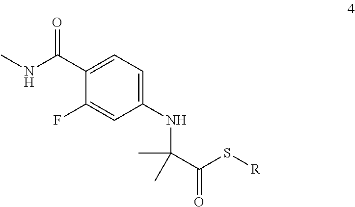 - IAAHEGARPMZSTJ-UHFFFAOYSA-N 2-[3-fluoro-4-(methylcarbamoyl)anilino]-2-methylpropanoic acid Chemical compound CNC(=O)C1=CC=C(NC(C)(C)C(O)=O)C=C1F IAAHEGARPMZSTJ-UHFFFAOYSA-N 0.000 description 4