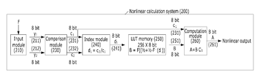 If a preset condition is satisfied, the bypass MUX 280 outputs a bx (bypass mux) value calculated by the comparison module as a final nonlinear output value. At this point, when the preset condition is satisfied, power consumption of corresponding logic can be reduced by interrupting supply of power to the index module 240, the lookup table memory 250 and the computation module 260.