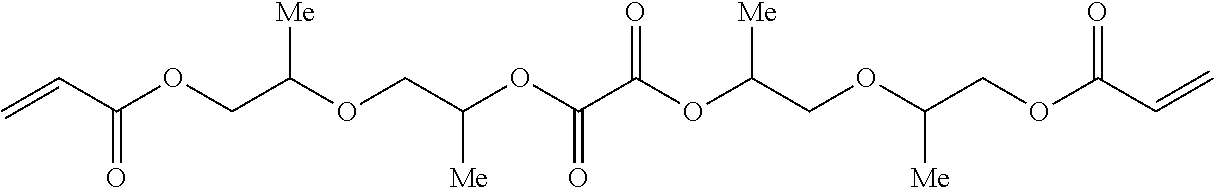 - XZYIDFJNNCULJY-UHFFFAOYSA-N C=CC(=O)OCC(C)OCC(C)OC(=O)C(=O)OC(C)COC(C)COC(=O)C=C Chemical compound C=CC(=O)OCC(C)OCC(C)OC(=O)C(=O)OC(C)COC(C)COC(=O)C=C XZYIDFJNNCULJY-UHFFFAOYSA-N 0.000 description 1