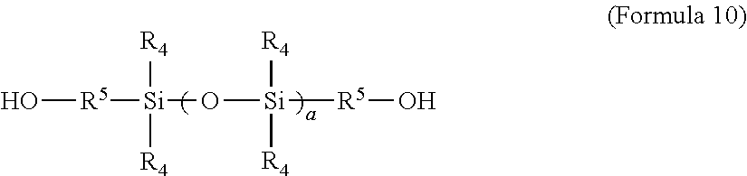 The samples for Examples 6, 8-12, and 18 were also tested for reductions in storage modulus values, pursuant to the Storage Modulus Test. Table 8 lists the storage modulus values at 0% relative humidity (RH), 50% RH, and 90%, as well as the percent reductions between the 0% and 50% RH, and between the 0% and 90% RH.
